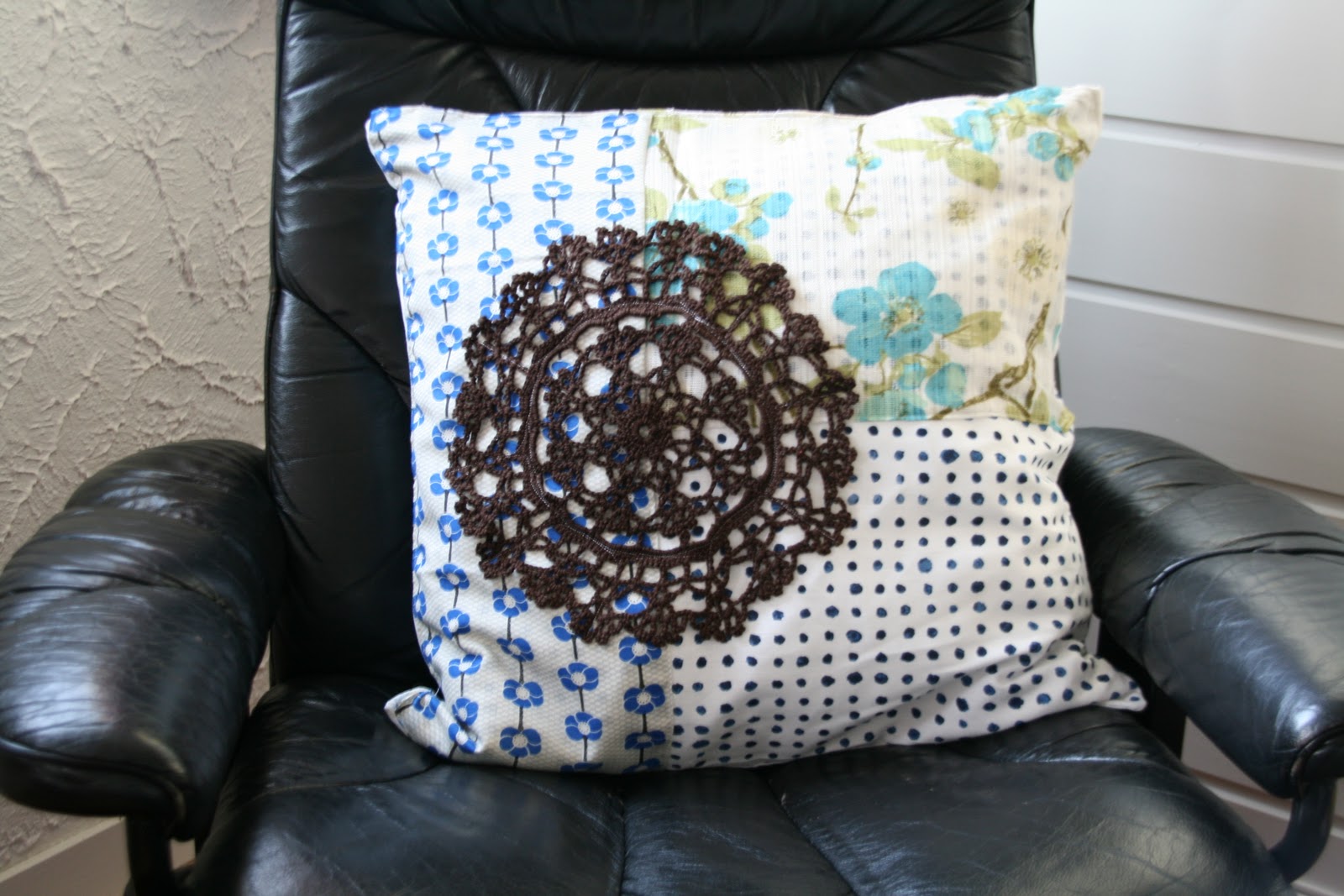 Herlig pute, flotte kombinasjoner! Har du heklet den runde brikken selv? Flott var den i alle fall. Heldig den som finner denne som gave under treet:) Hilsen Elin